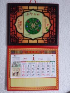 El calendario chino tiene una relación directa con el zodiaco chino, compuesto por 12 ciclos anuales de animales, (rata, buey, tigre, conejo, dragón, serpiente, caballo, cobra, mono, gallo, perro y cerdo). Cada ciclo comienza con el Año Nuevo Chino, y a cada uno le afectan las características de los cinco elementos, (agua, madera, fuego, metal y tierra), así como del ciclo binario (yin, yang). Estas combinaciones crean un ciclo general de 60 años. Además del animal anual para cada persona existe también el animal interno determinado por el mes de nacimiento y el animal secreto que lo determina la hora exacta del nacimiento, y es fundamental en la determinación de la personalidad de cada individuo.